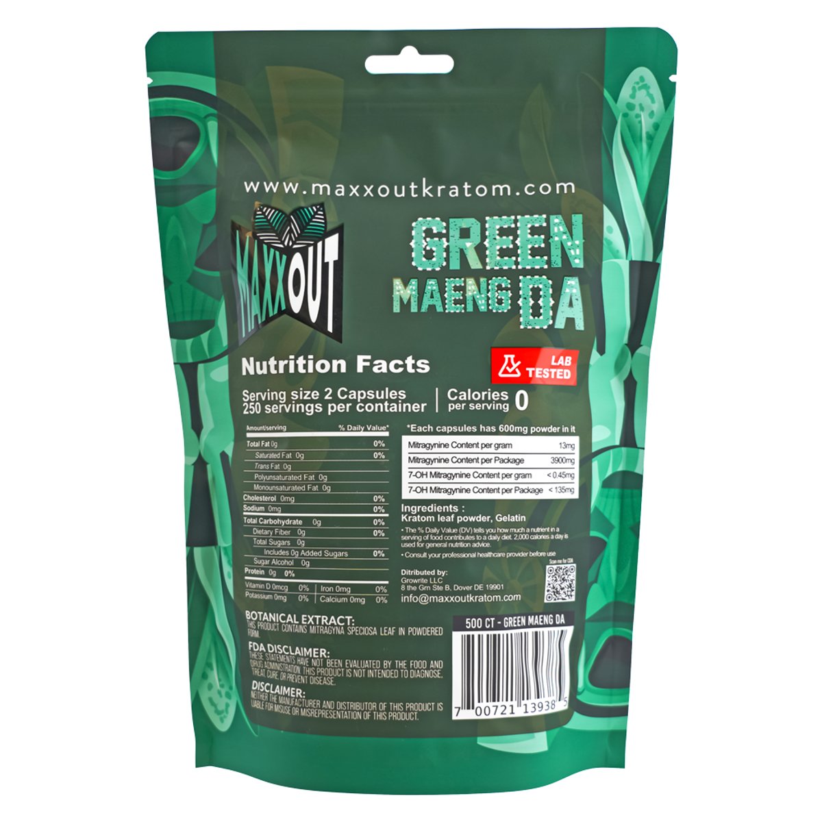 MaxxOut Kratom Capsules 500ct