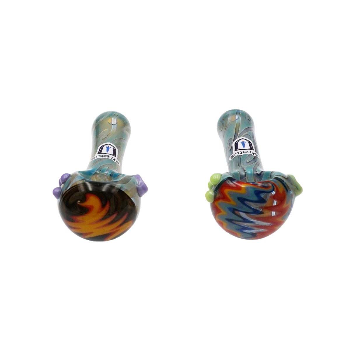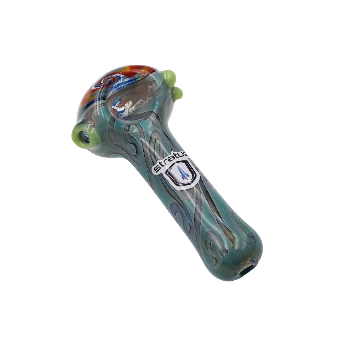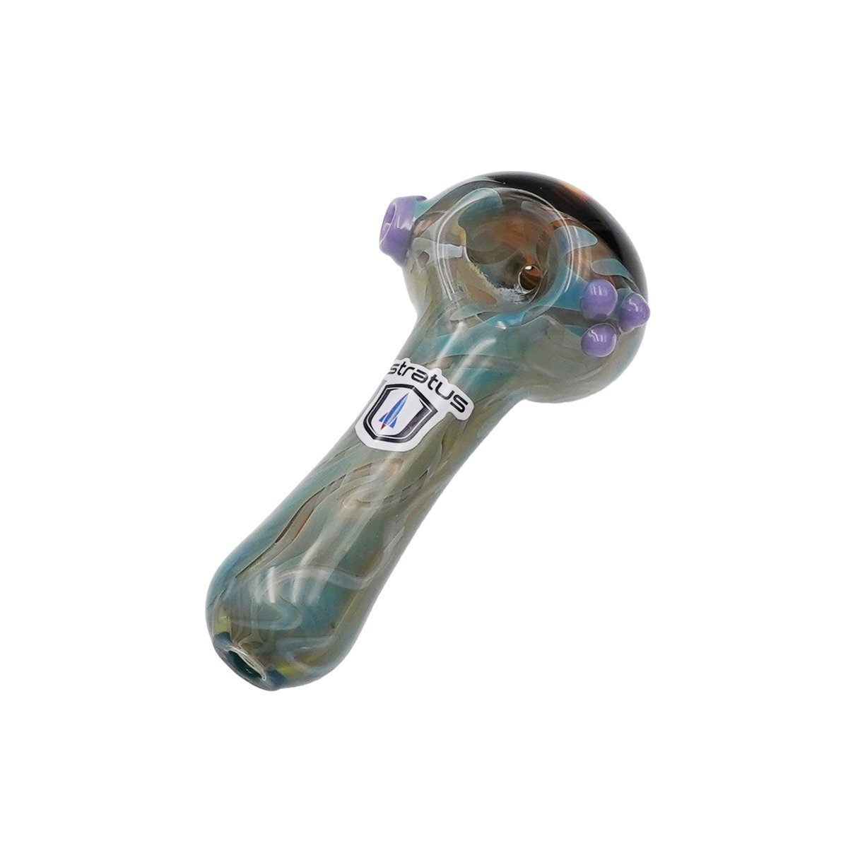 3" Silver fumed hand pipe. Made with Cobalt tubing and has reverse work on the head and 3 marbles.